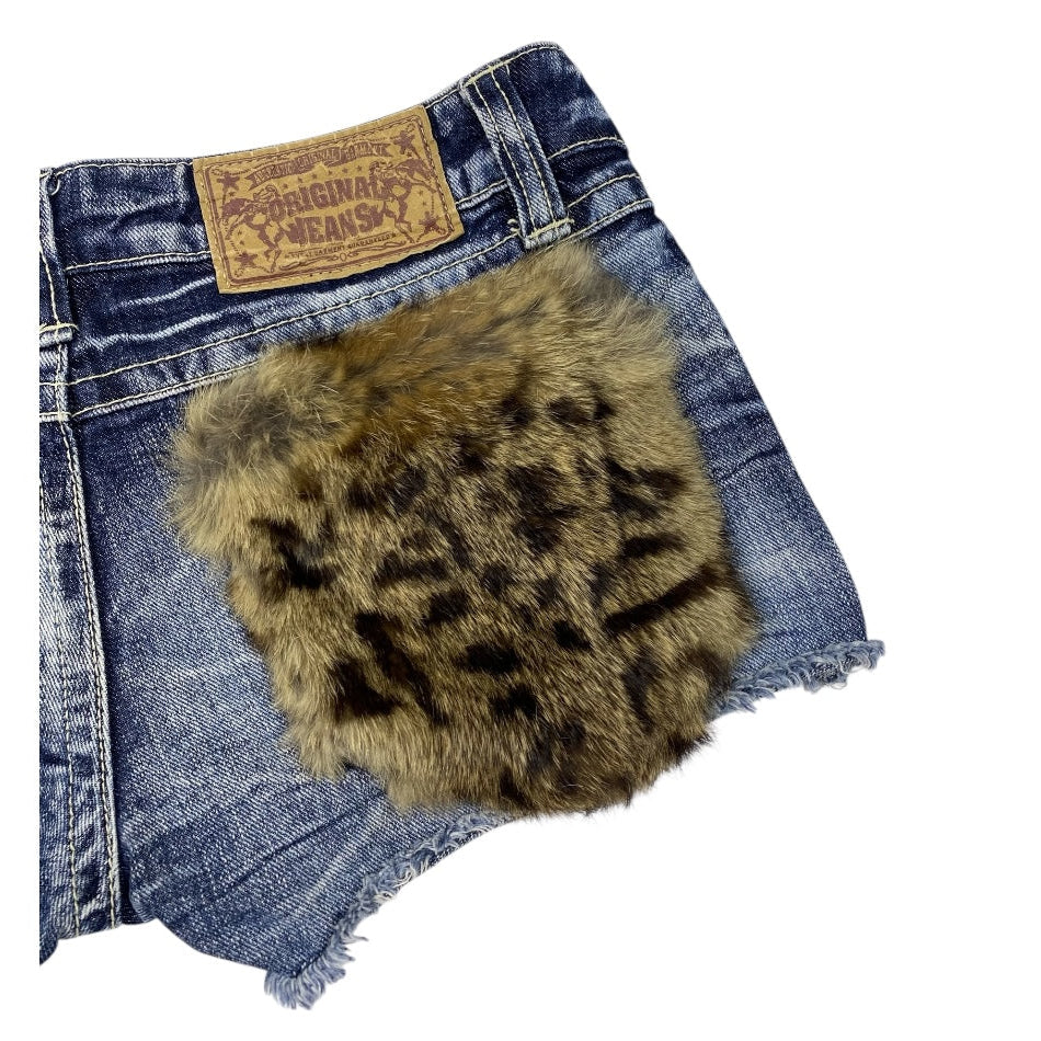 Original Jeans Leopard Fur Pocket Low Rise Denim Shorts